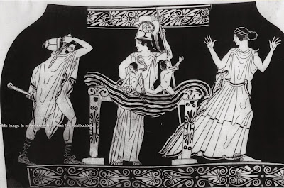 Alcmena y sus hijos: Heracles (matando serpientes en la cuna) e Ificles